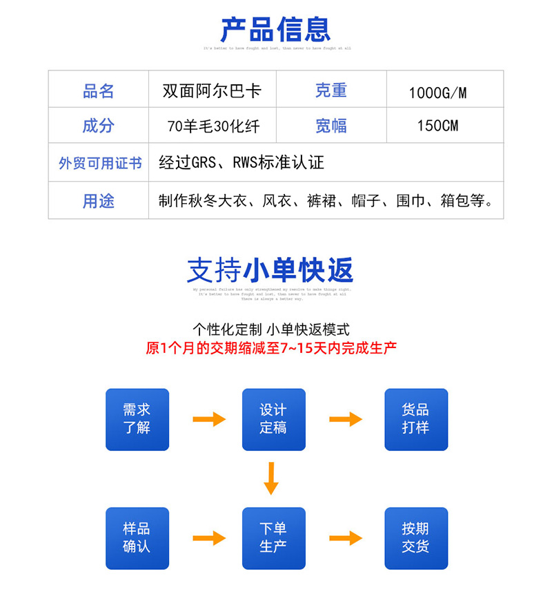 70羊毛双面阿尔巴卡面料