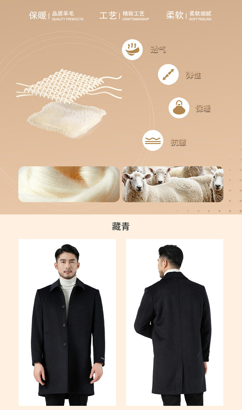 希普汉帝严选70%羊毛多色明扣行政大衣男士外套
