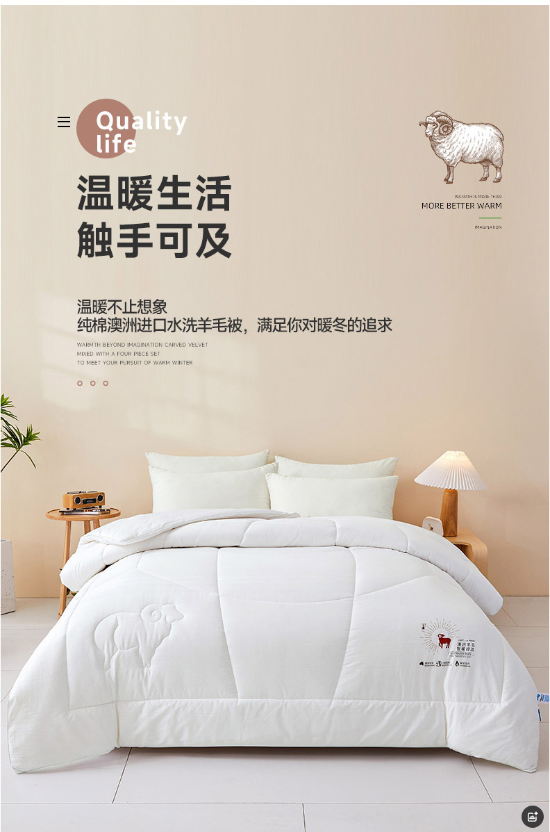 A类80S全棉提花澳洲羊毛被纯棉羊绒被子