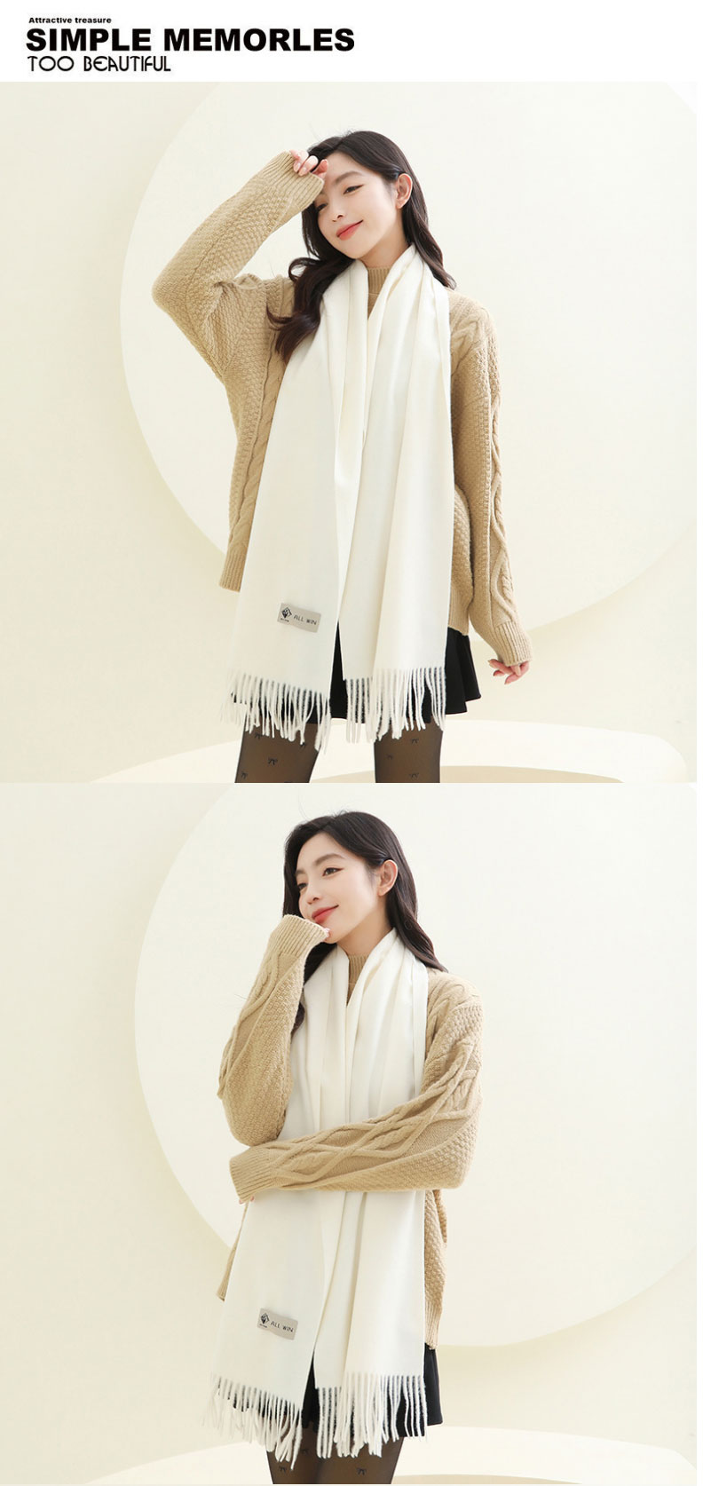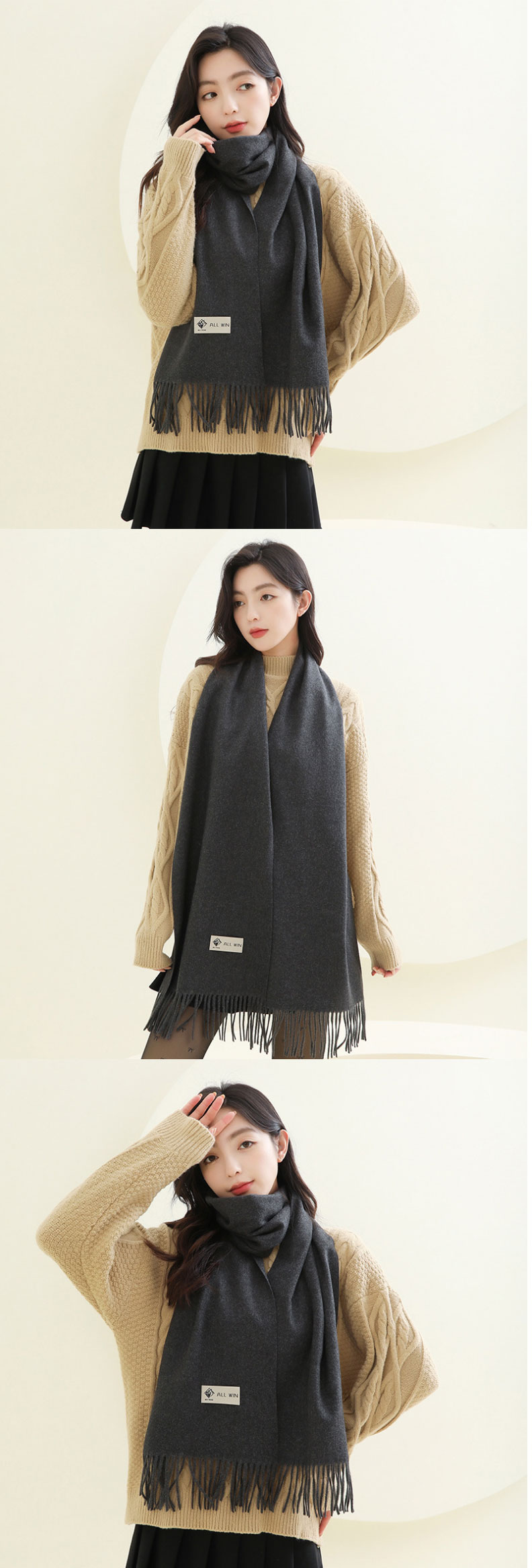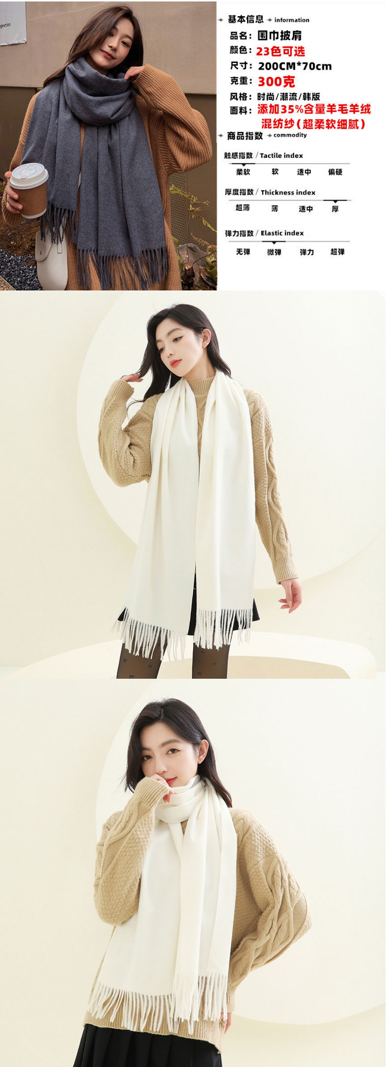 羊毛羊绒围巾女冬季纯色